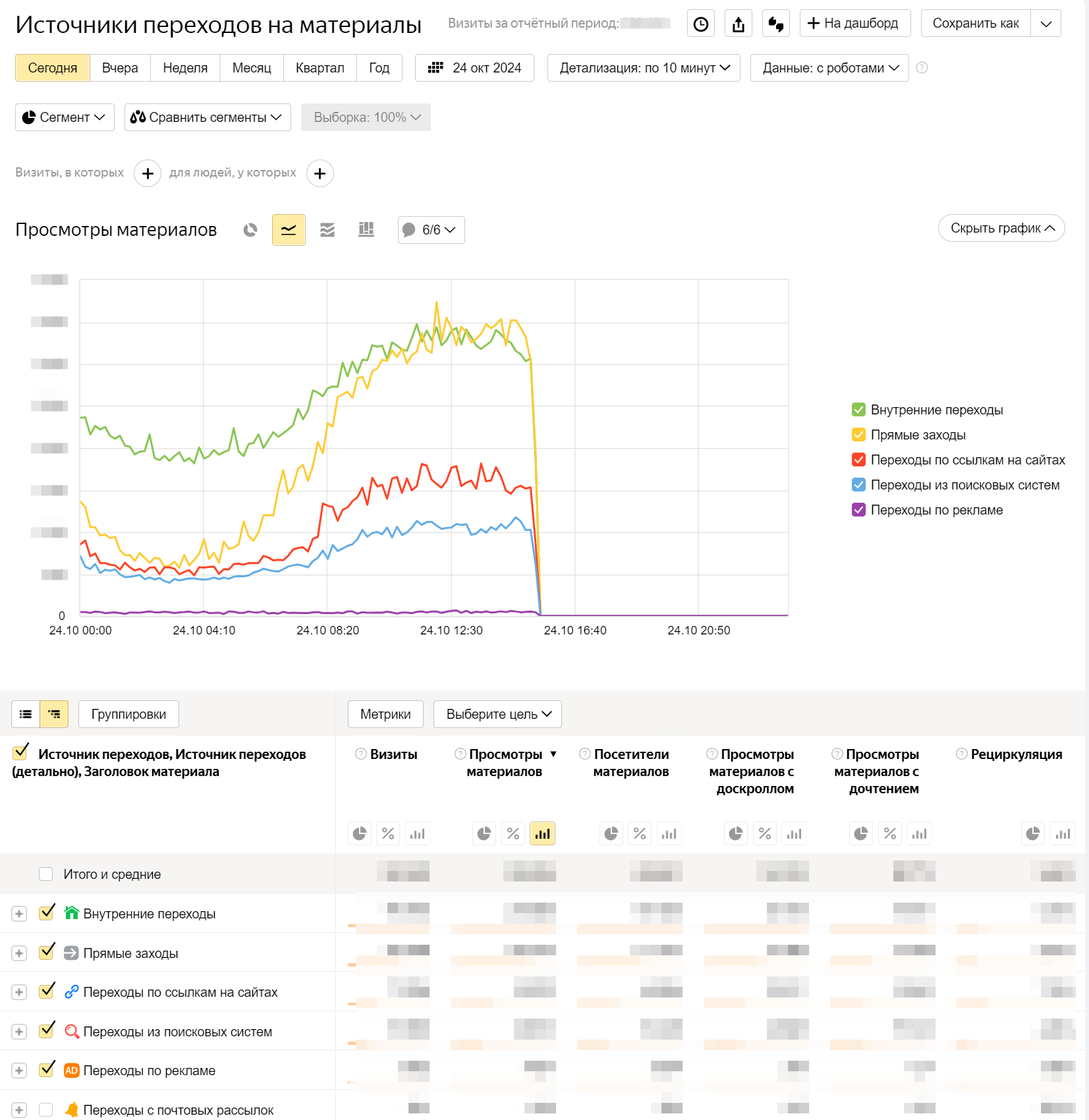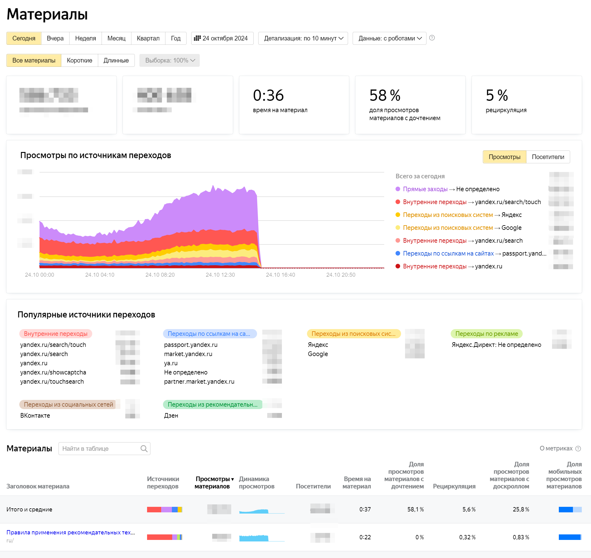 Если разметка верна и правильно подключен счетчик, через некоторое время по материалу начнет собираться статистика в Метрике. |
